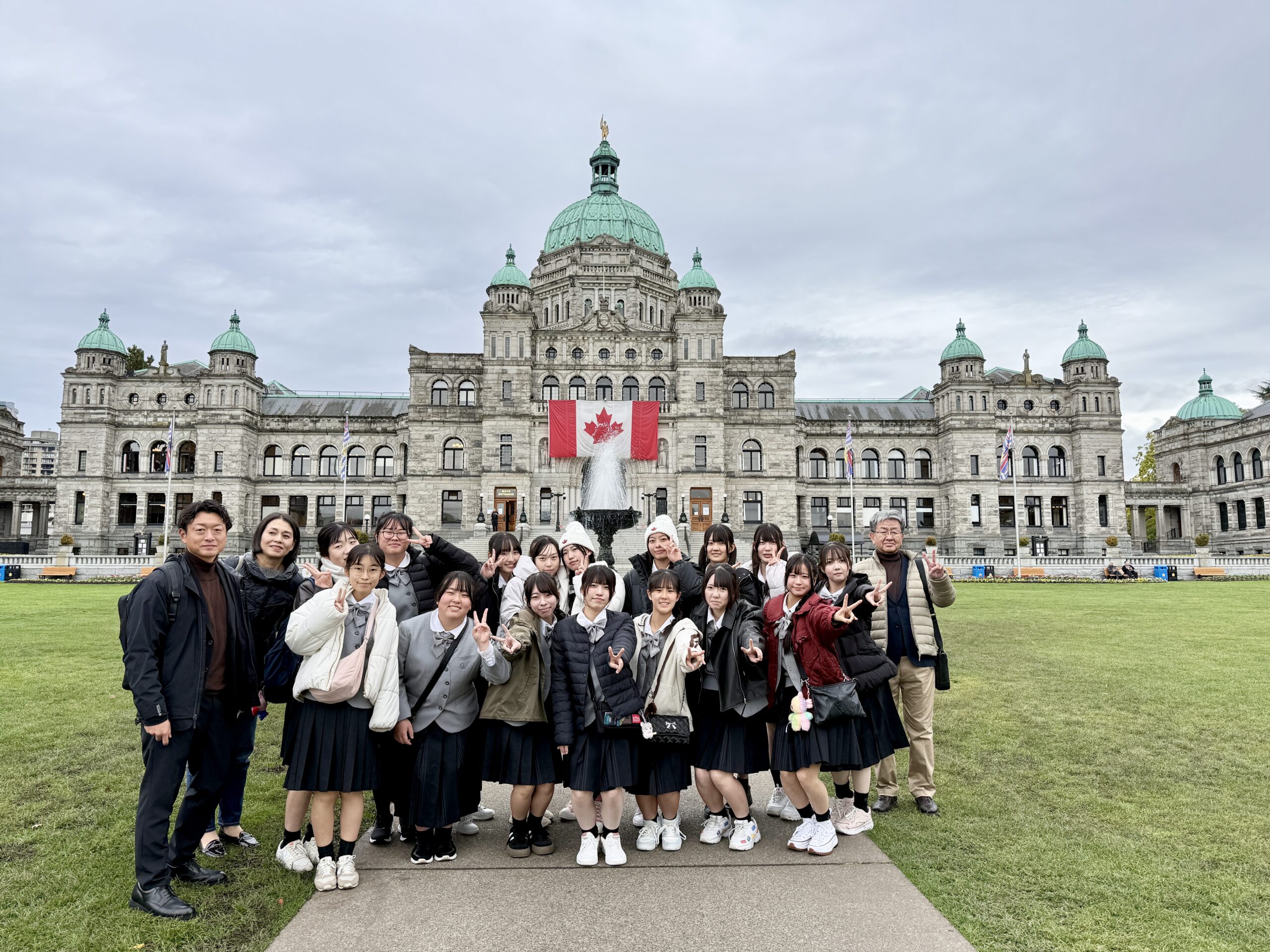 その後、バスでフェリー乗り場へ向かい、約1時間半の船旅を経てビクトリアへ到着。海上からの景色を楽しみながら、カナダの自然の雄大さを感じる時間となりました。