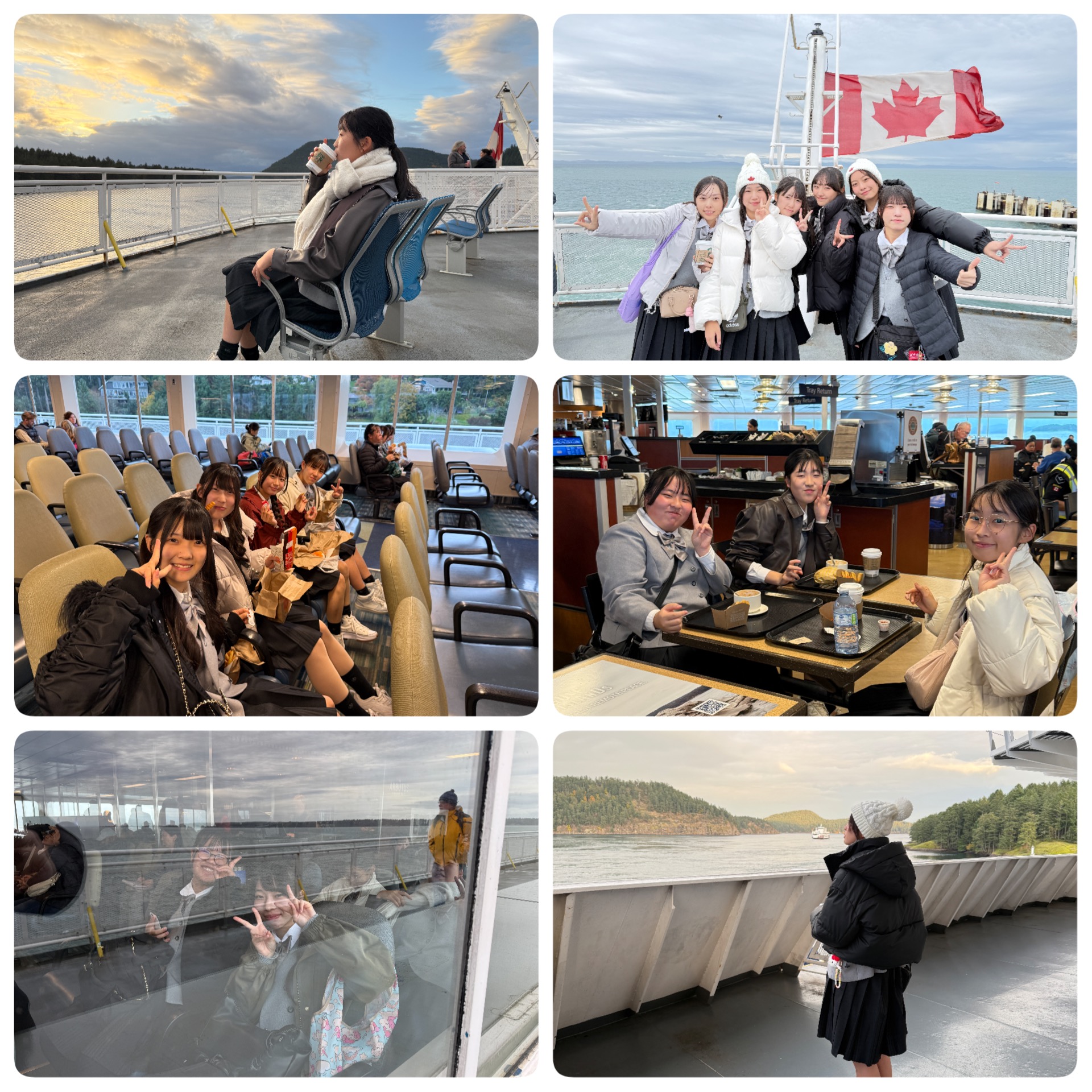 夕方には再びフェリーに乗り、バンクーバー市内のホテルへ戻りました。移動の多い一日でしたが、全員元気に行程を終えることができました。
