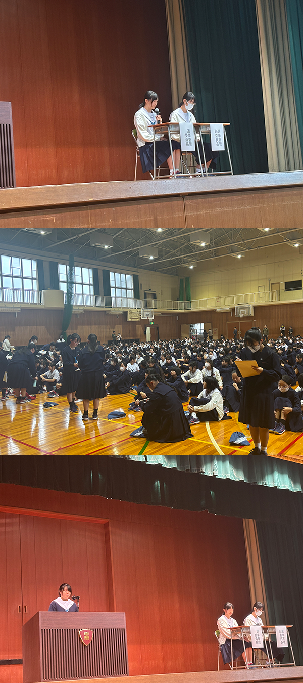 生徒会 2025.10.22 2025 中学生徒会選挙 先日学園講堂にて、中学生徒会本部役員立候補者による、立ち合い演説・所信表明が行われました。立候補した7名の生徒達はそれぞれ、より楽しく学校生活を送るための策等を掲げており、やる気とパワーが感じられる演説でした。生徒会本部役員と共に、今後の積極的な活動に期待をしています! 一覧ページ