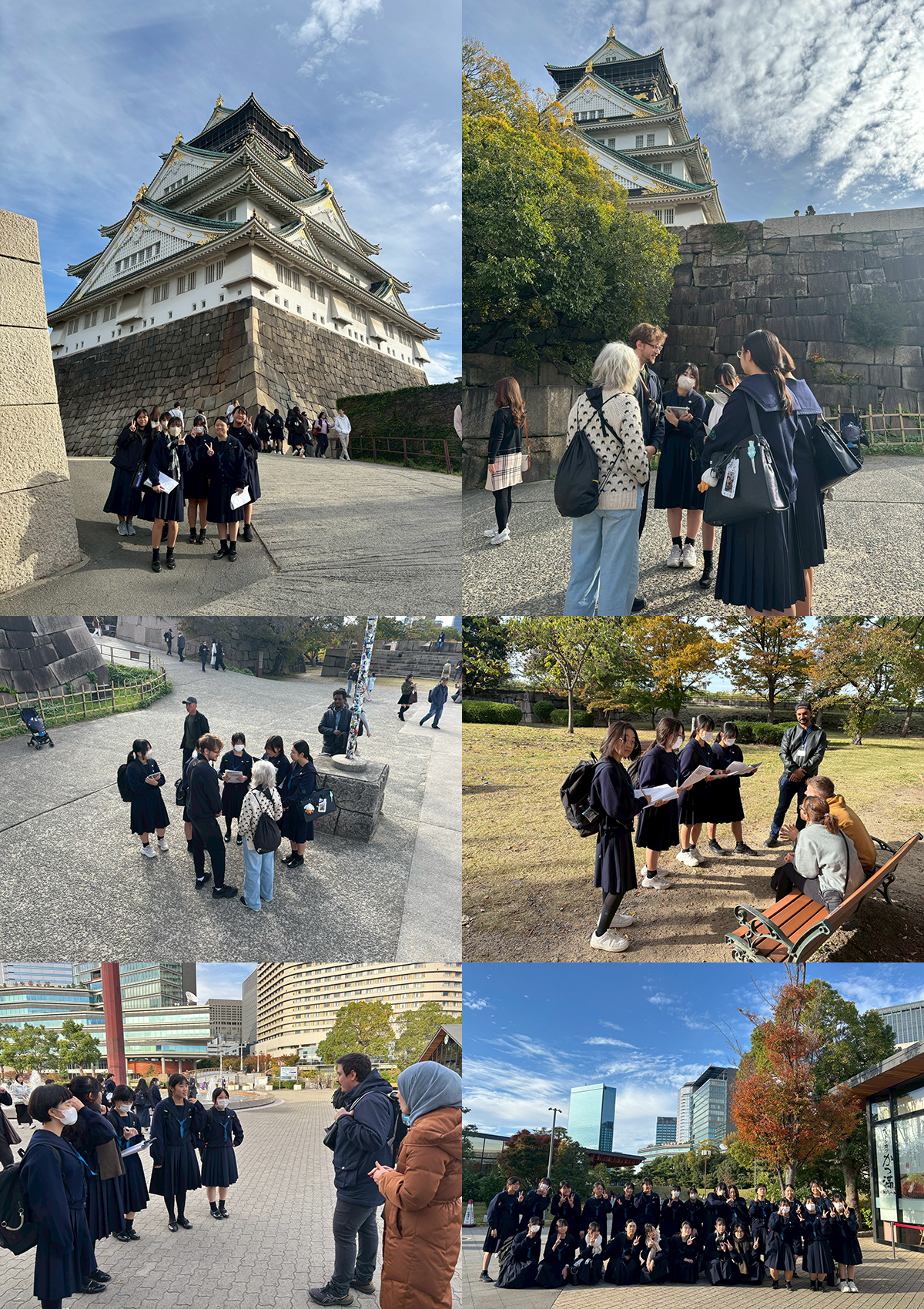 11月12~13日に中学二年生凛花コースのグローバルワークショップ(GWS)が行われました。京都大学や神戸大学に通われている留学生の方々が講師としてお越しくださいました。1日目開会式後、グループに分かれて自己紹介が始まり、少しずつコミュニケーションが取れてきたところで、留学生の方々のお国の紹介をしていただき、質疑応答の時間もありました。午後は大阪城公園へ移動し、外国人観光客にインタビューをしながら、英語で積極的にコミュニケーションを取っていました。2日目午前中はイングリッシュアクティビティ、ネイチャーウオーク、ポスター作成、発表練習、午後はプレゼン発表会とビンゴ大会を行いました。盛りだくさんのオールイングリッシュのプログラムで、生徒達は二日間英語でのコミュニケーションを満喫しました。